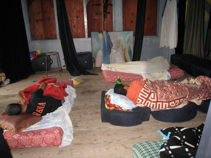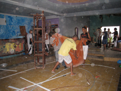 Some actors sleep in the theater the night before it was to be demolished. June 13, 2009