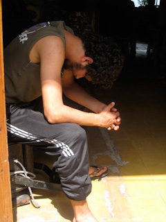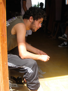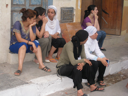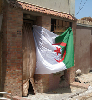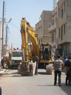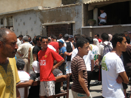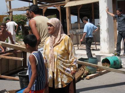 Fatiha Boudjemaa watches as young boys and men build a symbolic barricade in the street. June 13, 2009