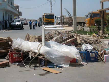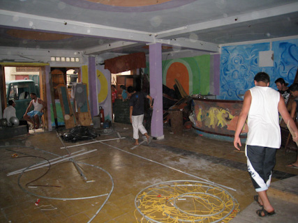 The theater empties out. The truck outside will take El Moudja’s equipment to their new location. June 13, 2009